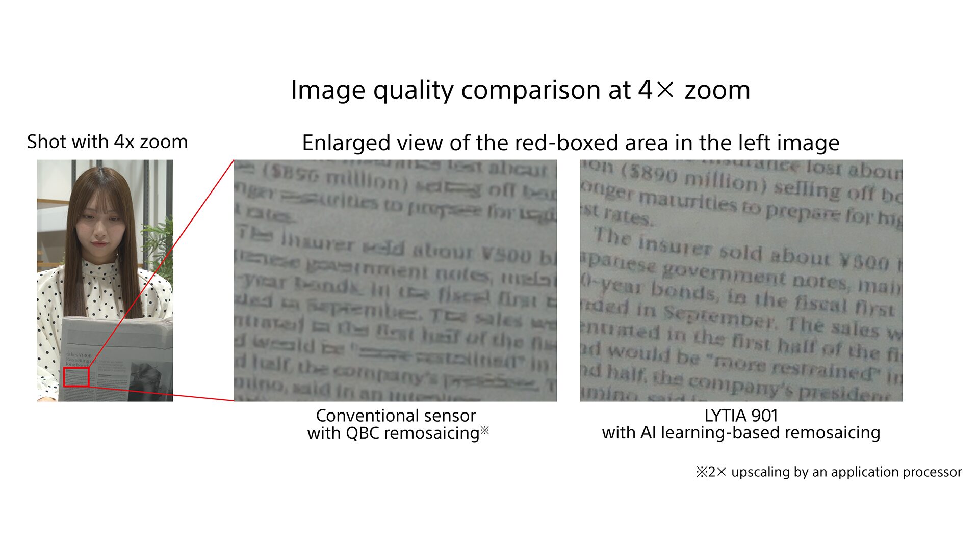 さらにAI学習ベースのレモザイクをセンサーに直接組み込むことで4K解像度で最大4倍ズームで撮影すると、高速処理と最大30fpsの高品質ビデオキャプチャが可能になるとしています。