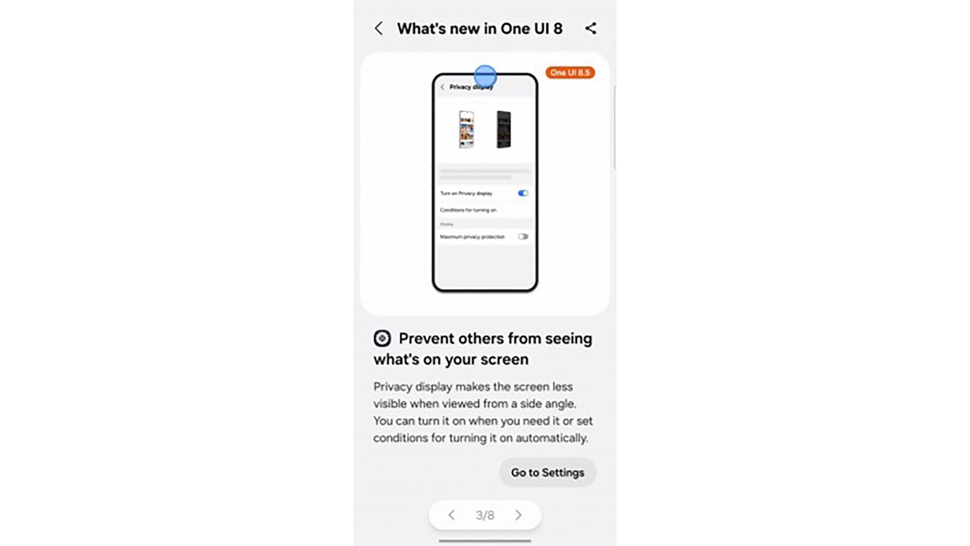 そして2つ目として正式名称は不明ですが「プライバシーディスプレイ」の実装で、すでにOneUI8.5のβ版から判明しています。ざっくりと言えば覗き見防止機能で、ハードがどこまで貢献しているのか不明ですが、ソフトで視野角を調整する機能だとイメージすると分かりやすいかもしれません。