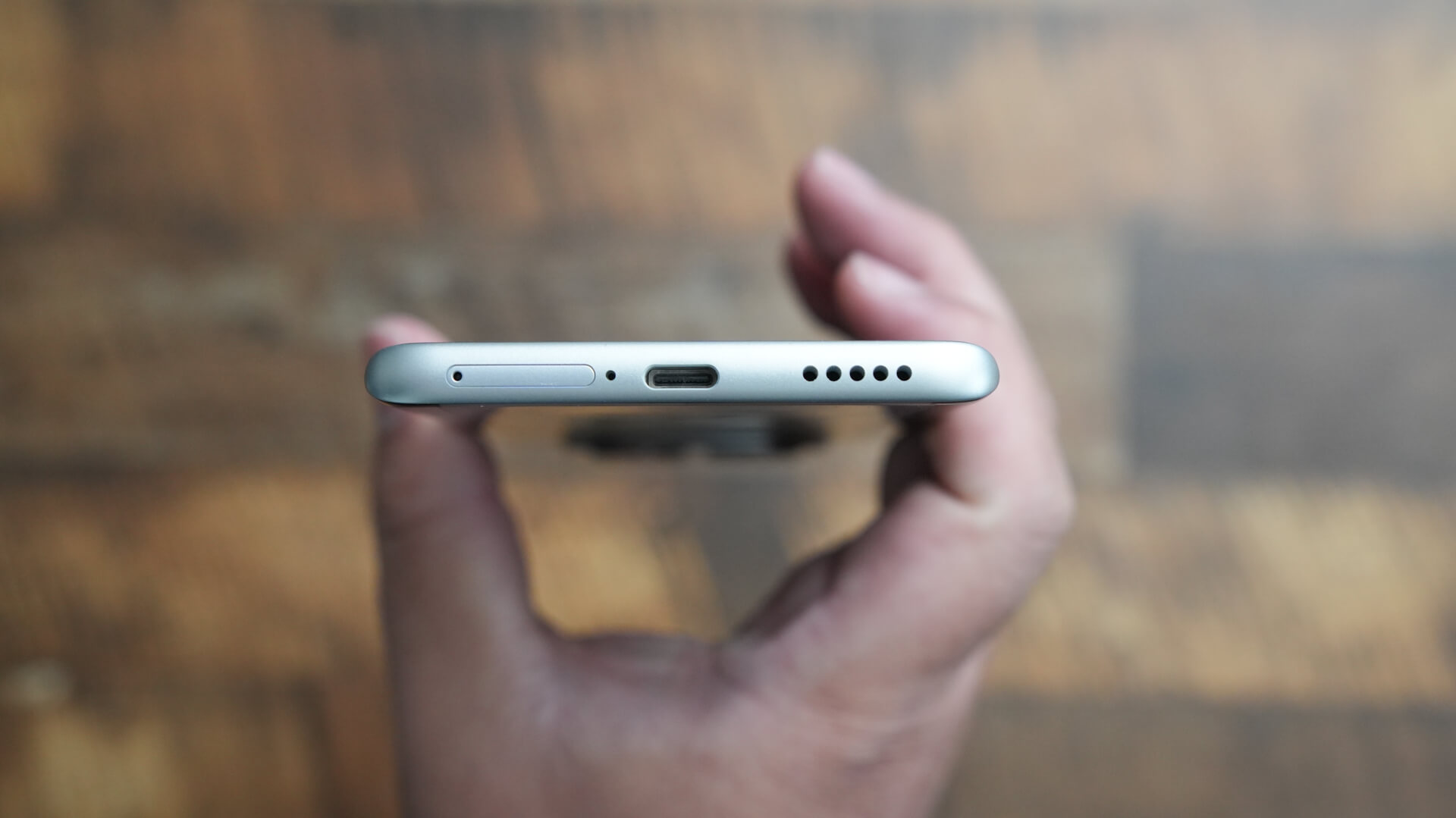 最後に本体下部を確認するとマイクにスピーカーグリルにUSB-CにSIMトレイを搭載しています。