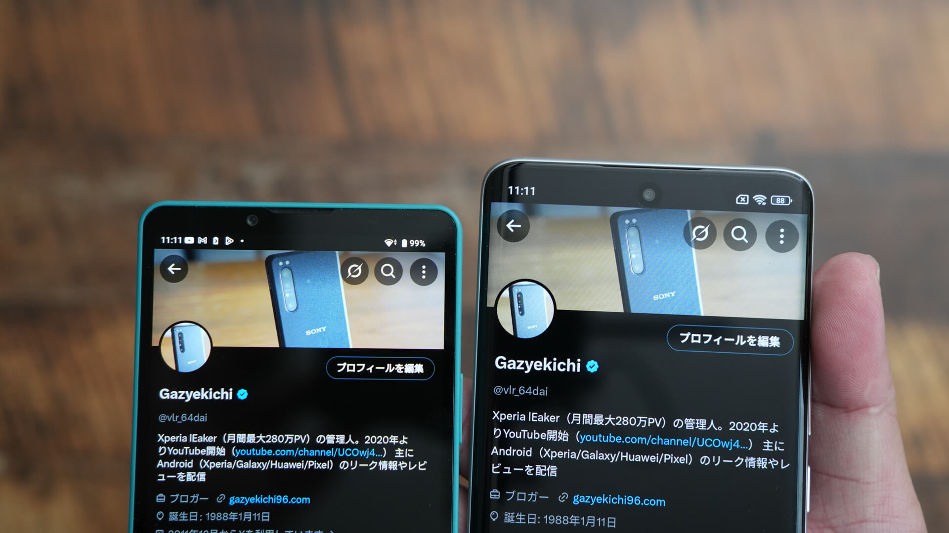 とりあえずYouTubeを再生してみるとディスプレイの明るさという部分はほぼ一緒に見えます。一方でディスプレイの色味に関してはデフォルトだとやはりXperia 10Ⅶの方が深みがあります。