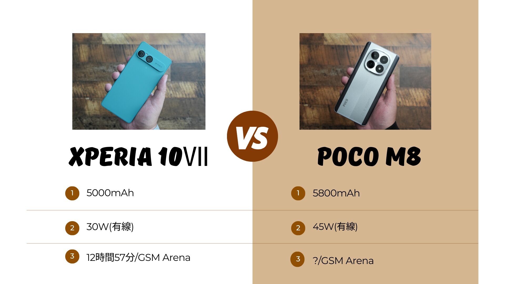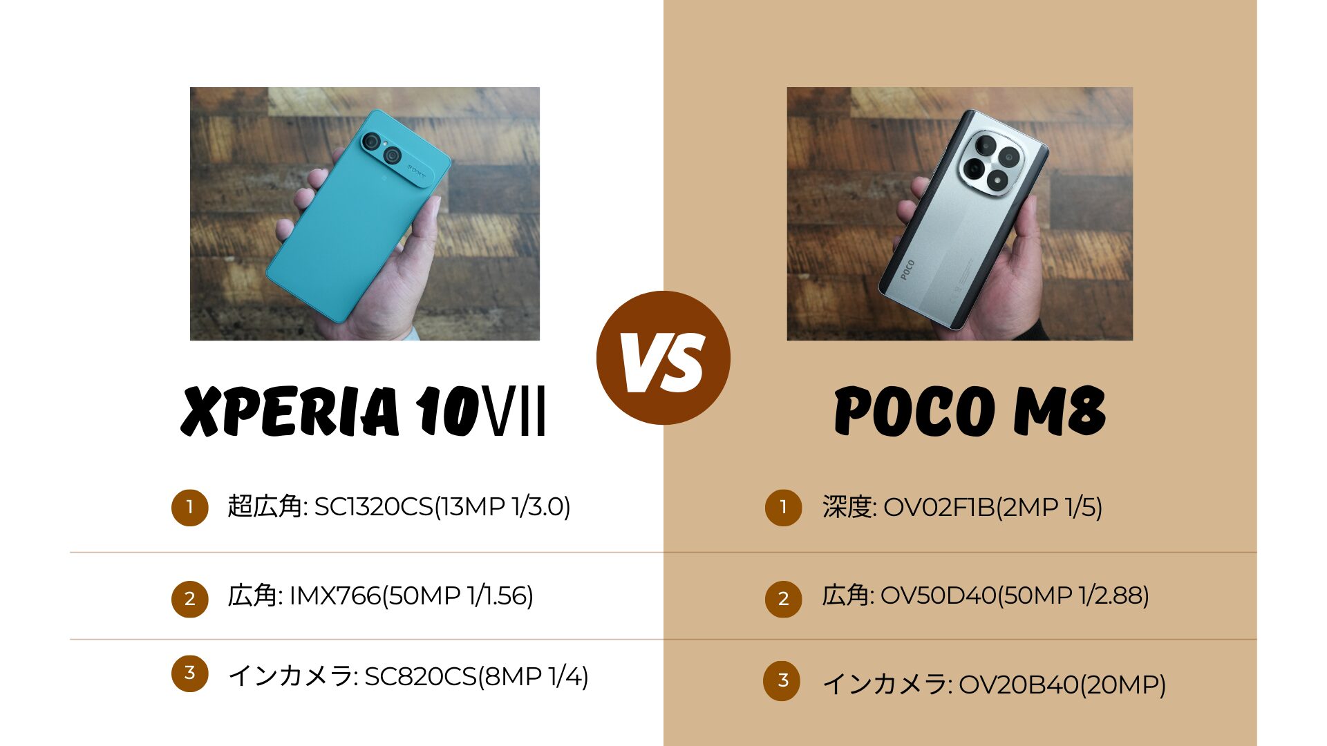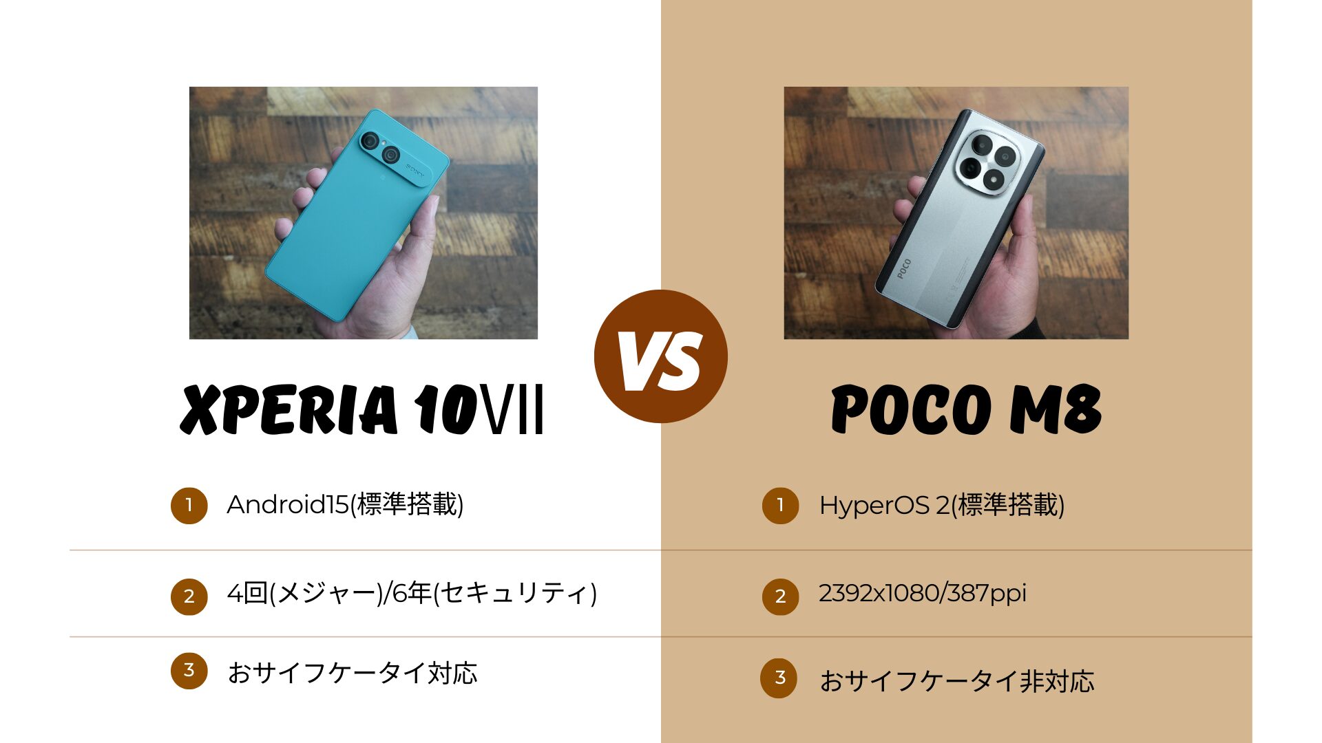 今回のサンプルはXperia 10Ⅶ/POCO M8 5Gの順番になっているので予めご了承下さい。