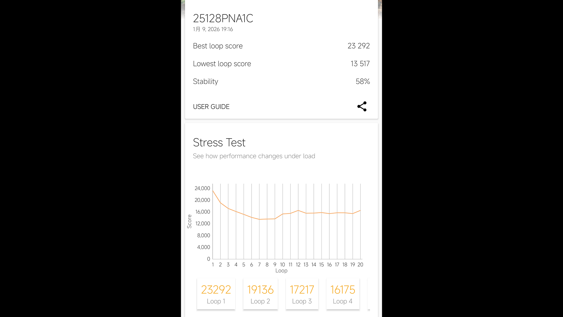 前モデルは15周目の途中で発熱が原因で強制終了になりましたがXiaomi 17 Ultra By Leicaは最後まで完走と何より安定性という部分ではXiaomi 17 Ultra By Leicaの方が優秀なのかもしれません。