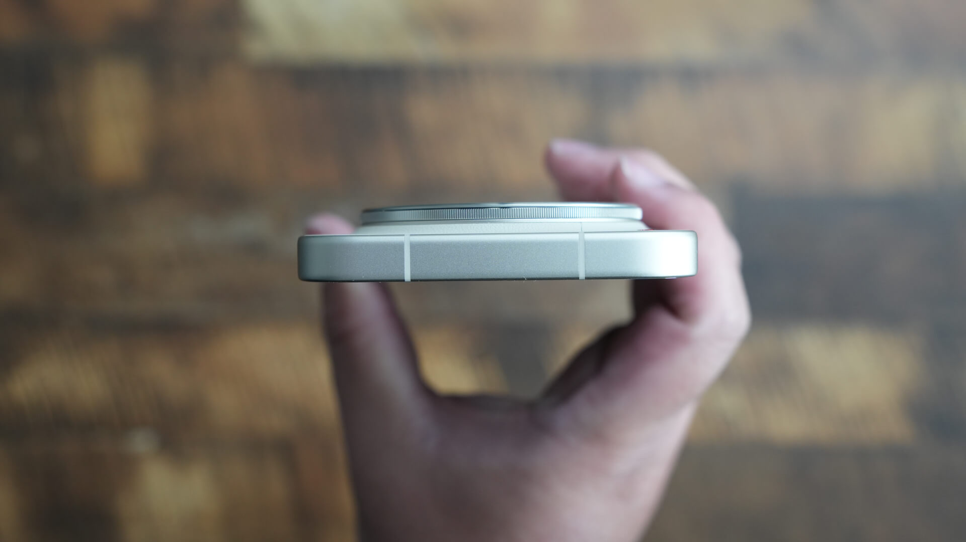 そしたカメラデザインを確認してみると同じサークル型ですがXiaomi 17 Ultra By Leicaは僅かに小型化されている感じで実際にカメラバンプ部分の厚みを計測してみると前モデルは15.9mmでXiaomi 17 Ultra By Leicaは14.8mmでスリム化されていることは目視でも確認できます。