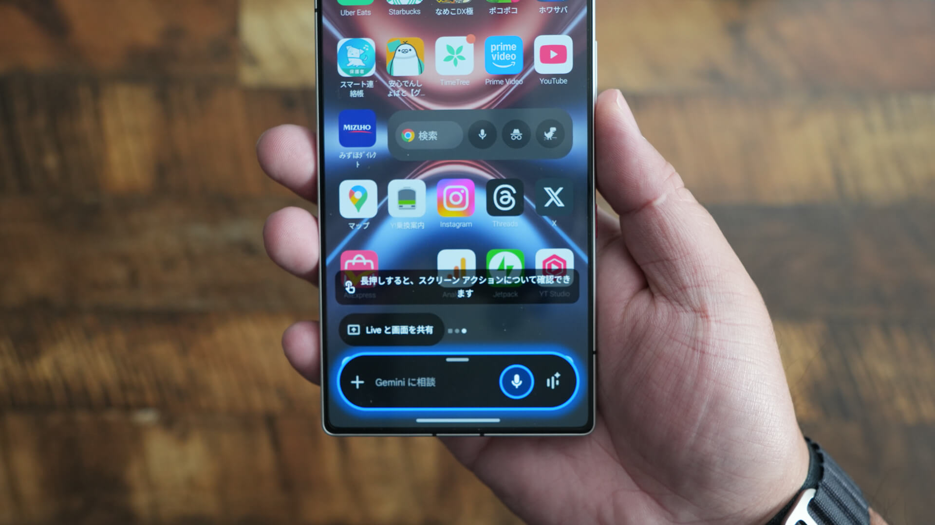 あとはPixelなどに慣れている自分からすれば違和感があった部分としてはGeminiの起動です。