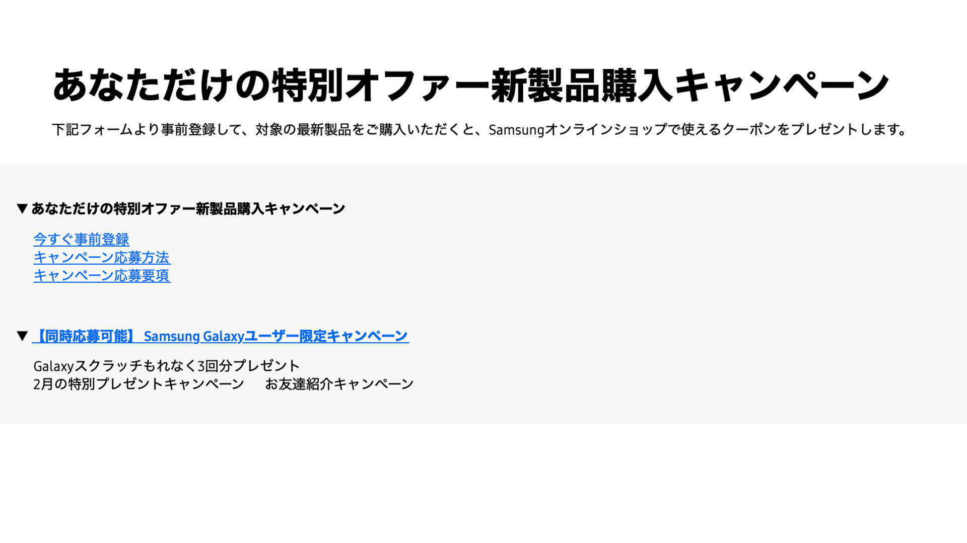 - 対象期間中に対象の新製品をご購入されたキャンペーン対象の方にSamsungオンラインショップクーポン4,500円分をプレゼント