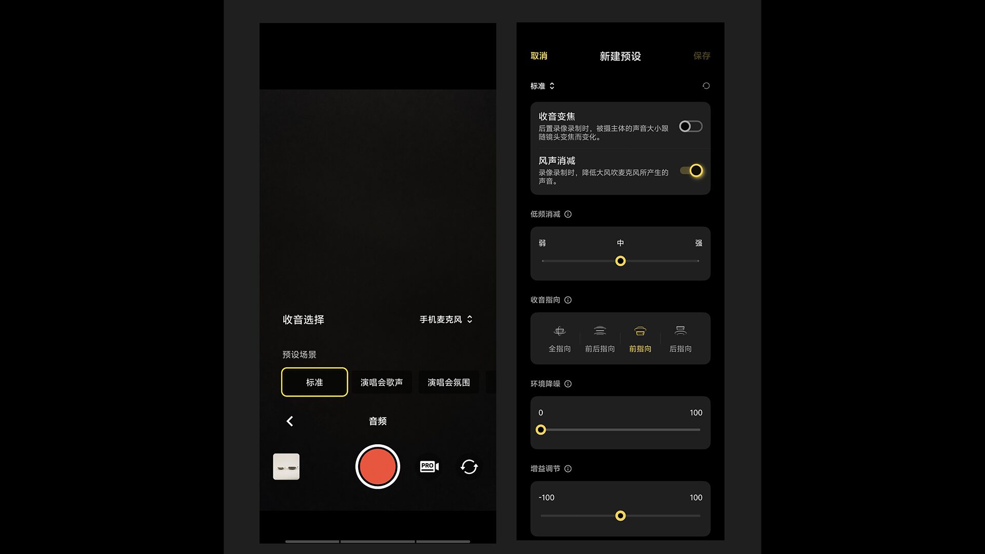 以前触れましたが、X300 Ultraは4マイクアレイを搭載しています。さらに動画撮影UIには、新しい録音シーンプリセットが追加されています。