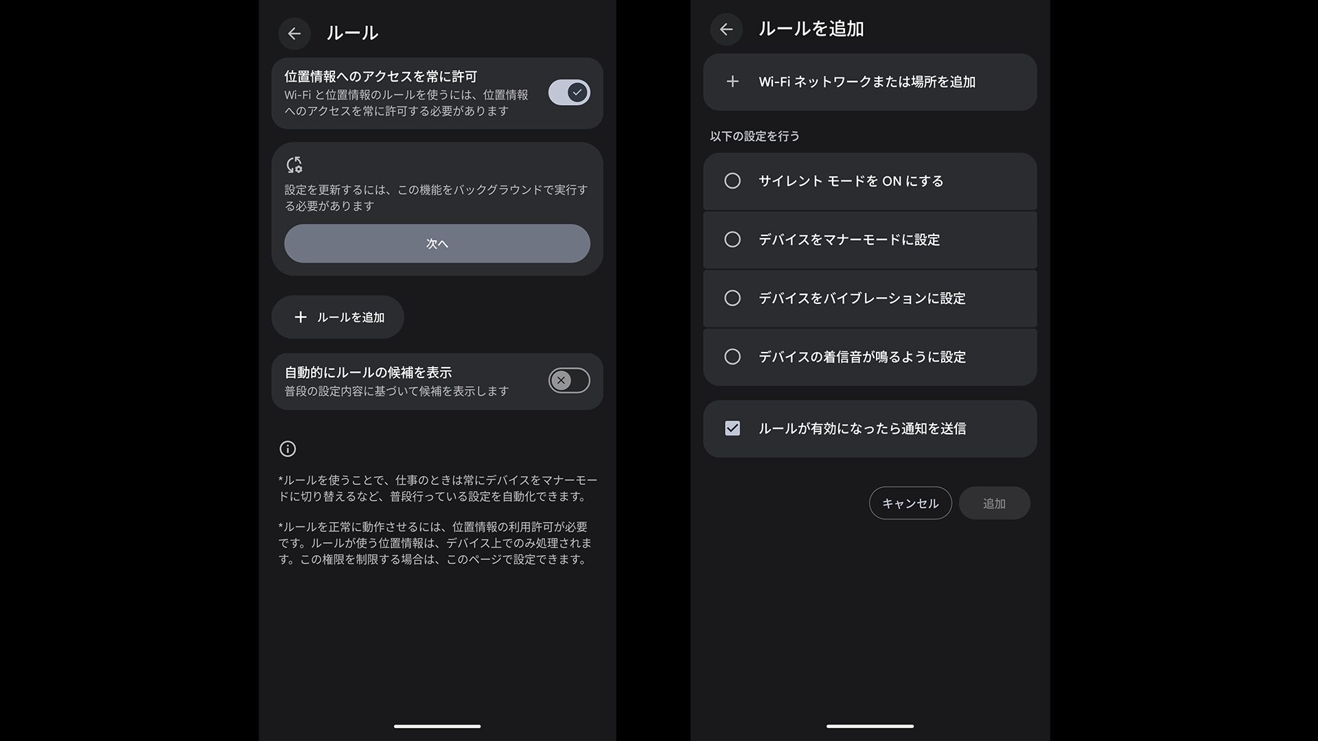 ルールは例えば職場ではサイレントモードに切り替えができる設定になりますが、今回の情報によると指定した場所に到着・離脱しても設定してある動作が正常に機能しないとしています。