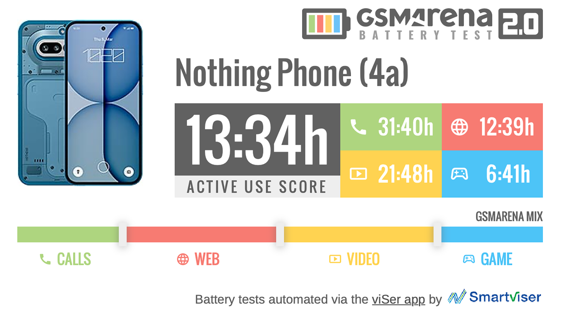 今回GSM ArenaがNothing Phone (4a)のバッテリーテストの結果を公開していることが判明しました。