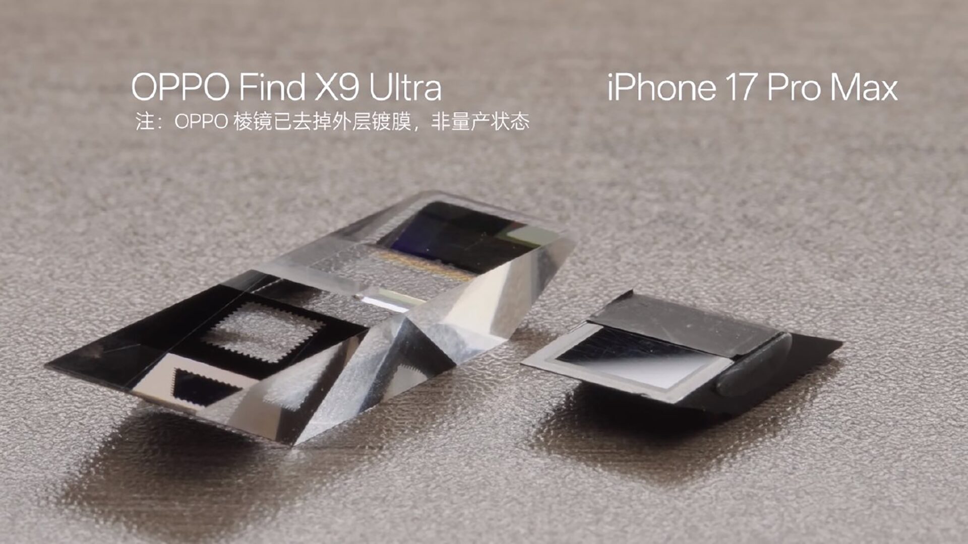 センサーサイズでみればiPhone 17 Pro Maxの方が大きいですが、望遠構造に違いがありiPhone 17 Pro Maxはテトラプリズムに対してOppo Find X9 UltraはWプリズムに対応しています。