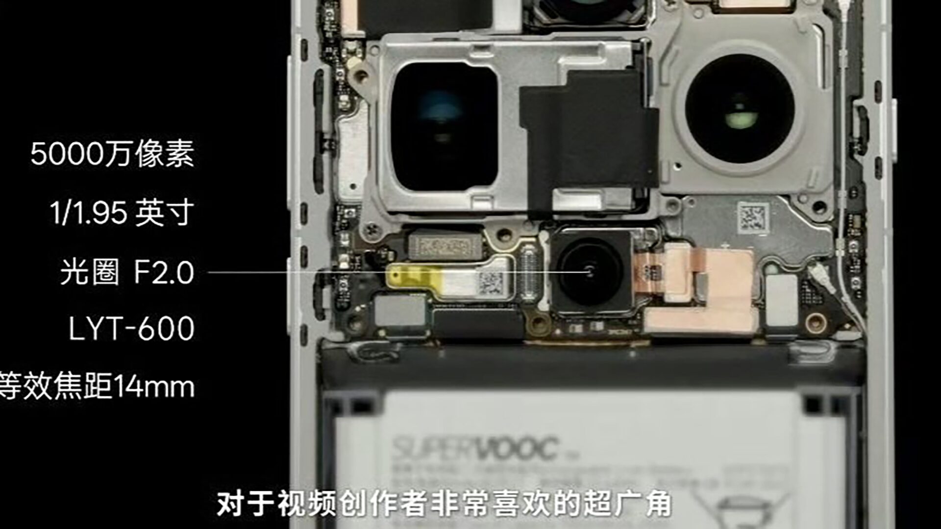 そして事前情報では1/2.76インチのJN5を搭載すると予測されていましたが、上記の画像からも1/1.95インチのLYT-600を搭載していることを確認することが出来ます。Oppo Find X7 UltraかOppo Find X8 Ultraあたりでも同じく超広角として採用していた記憶です。