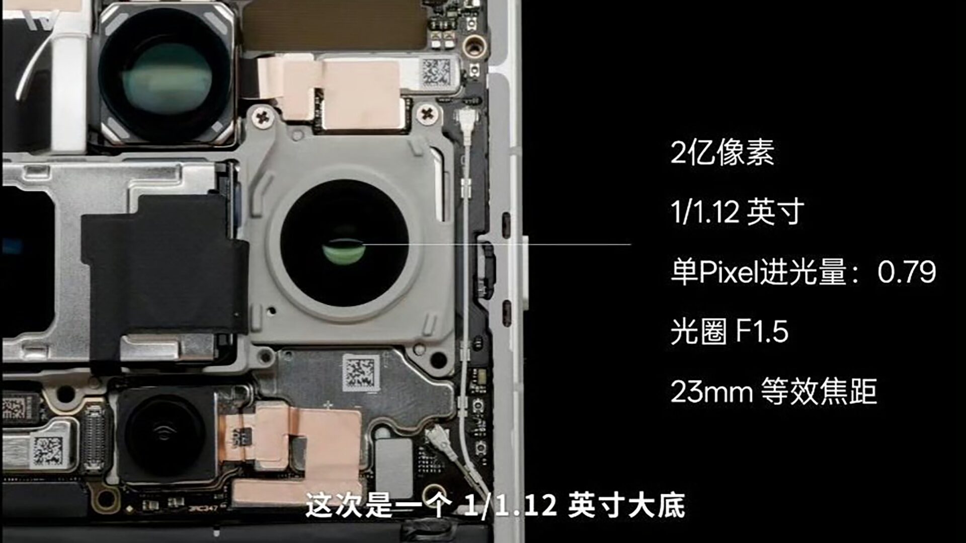 • 200MP Sony LYT-901 (1/1.12″, f/1.5, 23mm) massive main sensor